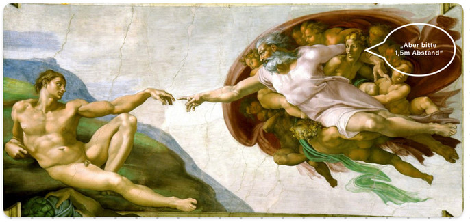 Als Inspiration diente uns bei diesem Projekt das Buch von Stefano Guerrera "Wehe, du postest das!" Darin verknüpft Guerrera klassische Kunstwerke mit zeitgenössischen Sprüchen und Zitaten, wodurch klassische Kunst-Topoi neu interpretiert werden und mal albern, mal abgründig, mal absurd, mal philosophisch aufgeladen erscheinen.