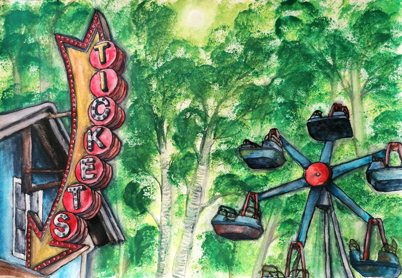 Jeder hat schon von der Atomkatastrophe von 1986 in Tschernobyl, Ukraine, gehört. Josphine E. und Julia H. (s. u.) haben sich von Bilder inspirieren lassen, die den verlassenen Landstrich um Tschernobyl, heute noch ein Sperrbezirk, wiedergeben. Eine besonders morbide Faszination strahlt dabei der verlassene Ort Prepyat aus, mit seinen leerstehenden Kindergärten, Krankenhäusern oder auch Unterhaltungspark. Die Bilder von diesen Gruselorten gehen um die Welt, doch sie sind nichts für schwache Nerven. Zu allgegenwertig sind die Spuren der Menschen darauf, die ums Leben gekommen oder gleich nach der Nuklearkatastrophe geflohen sind.